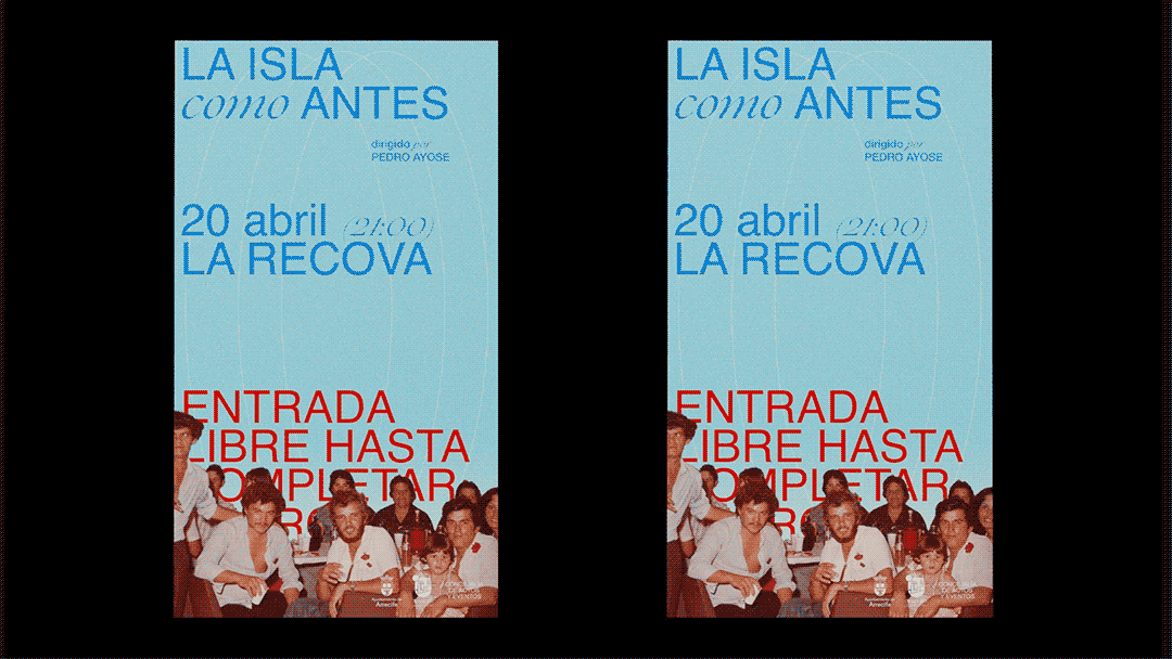 Para la creación del material gráfico de “La Isla como antes” partimos de un proceso de investigación en imágenes de archivo analógicas, que posteriormente digitalizamos para darles nueva vida. Con esta base visual construimos la identidad de la campaña, evocando la memoria colectiva de Lanzarote y resaltando su esencia más auténtica. El diseño se inspiró en los valores y el costumbrismo de la isla, poniendo en diálogo pasado y presente para acompañar el estreno teatral con una propuesta gráfica que conecta con la historia y la sensibilidad local.
