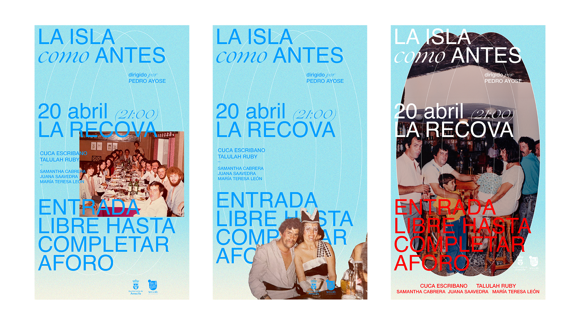 Para la creación del material gráfico de “La Isla como antes” partimos de un proceso de investigación en imágenes de archivo analógicas, que posteriormente digitalizamos para darles nueva vida. Con esta base visual construimos la identidad de la campaña, evocando la memoria colectiva de Lanzarote y resaltando su esencia más auténtica. El diseño se inspiró en los valores y el costumbrismo de la isla, poniendo en diálogo pasado y presente para acompañar el estreno teatral con una propuesta gráfica que conecta con la historia y la sensibilidad local.